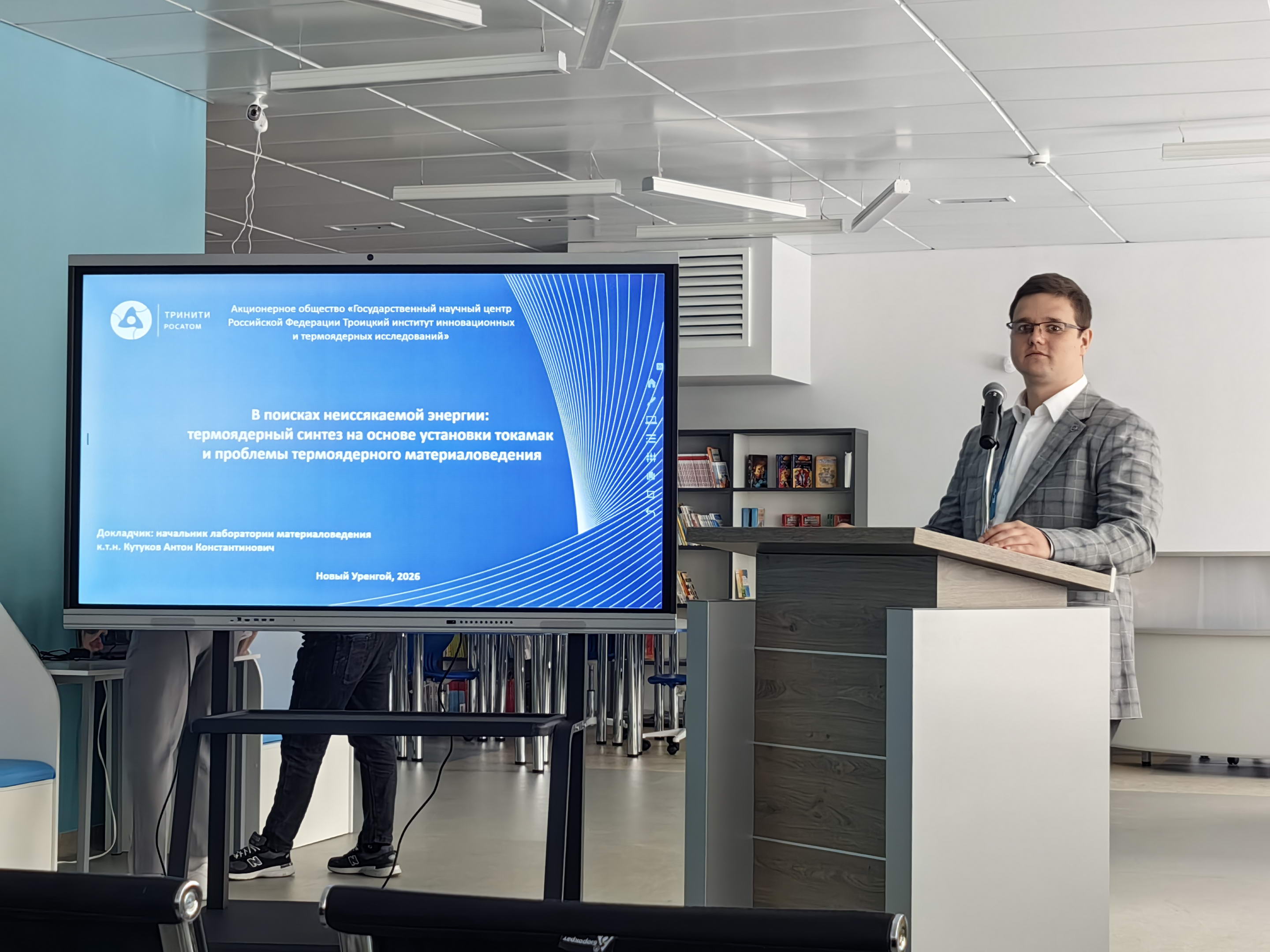 Эксперты из Троицкого института инновационных и термоядерных исследований (АО «ГНЦ РФ ТРИНИТИ») провели цикл вдохновляющих встреч с юными физиками в рамках заключительного этапа Всероссийской олимпиады школьников по физике (ВсОШ), проходившего с 5 по 11 апреля 2026 года в Новом Уренгое (Ямало-Ненецкий автономный округ) на базе Муниципального бюджетного общеобразовательного учреждения «Арктический лицей». В этом году впервые победитель Всероссийской олимпиады школьников по физике среди 9-х классов отправится в международную арктическую экспедицию «Росатома» на атомном ледоколе «50 лет Победы».